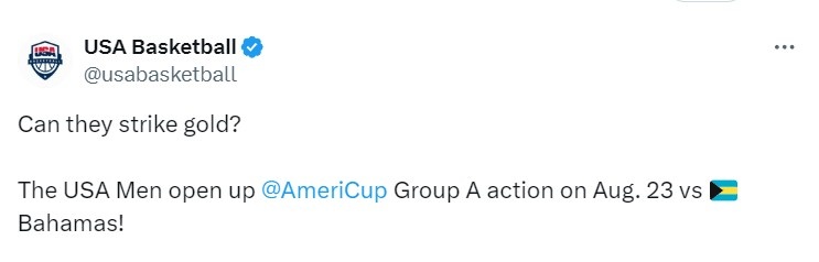美洲杯开赛前,美国男篮曾在官推发问球队能否夺冠,但现在球队显然遇到了一些困难。