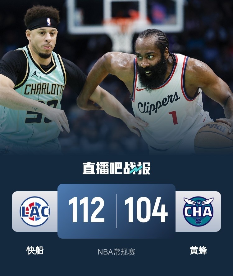 快船(28-20):鲍威尔27分3板4助2断、莱昂纳德21分9板2助、祖巴茨14分11板1助、哈登14分5板10助、德里克-琼斯12分8板3助2帽、科菲10分1板2助2断、小凯文-波特7分4板3助、曼恩5分3板1助、科比-布朗2分1板