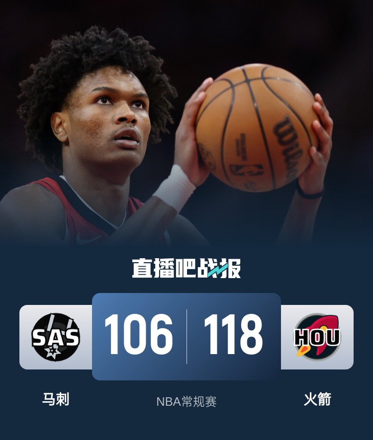 比赛开始,火箭率先发力,狄龙连中三分将分差拉开到两位数,马刺迟迟找不到感觉,火箭多点开花不断拉大分差,次节泰特三分一度帮助球队将优势扩大到20分,马刺连投带罚止住颓势,杰夫-格林连续拿分,半场战罢火箭64-46领先马刺。易边再战,火箭延续火力继续扩大优势,阿门连续补篮得手后三分也有,马刺连投带罚苦苦支撑,末节火箭稳扎稳打保持优势,马刺苦苦追赶无奈之前挖坑太大。最终,火箭118-106击败马刺,主场过关。