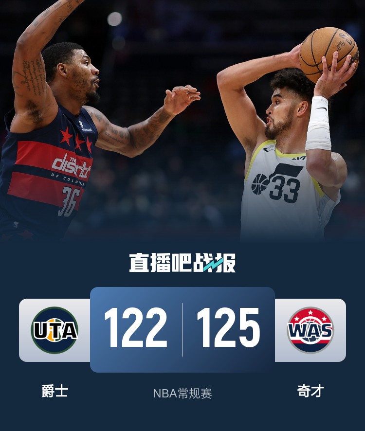首节之争双方状态状态相当,开局两队打得热闹但分差一直不大,奇才方面榜眼萨尔首节拿到9分表现出彩,爵士则多点开花一路僵持;次节奇才凭借开局三记三分抢占主动权,爵士前期一直咬住比分但末段未能匹配上强度,奇才则在最后时刻再送三记三分并拉开7分领先进入下半场。休息归来奇才率先犯难送上12-2的攻势拉开两位数优势,但爵士很快回敬9-0的攻势迎头赶上;这之后双方一路拉锯,爵士末节一度追至1分但临门一脚又一次落败,奇才依靠一波9-2的攻势重新拉开比分,爵士最后的绝平三分不中未能扳平比分。最终,这场东西部倒数第一的对决奇才力克爵士拿下比赛。