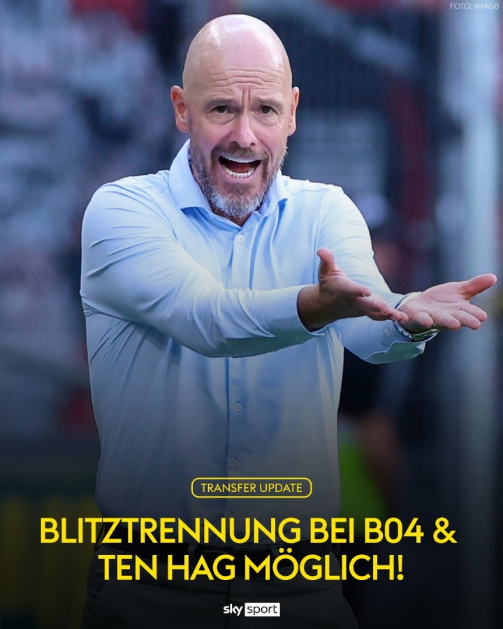 08月31日讯 德天空消息,滕哈赫可能很快从勒沃库森下课,不排除在国际比赛日迅速发生!滕哈赫希望留下,并表示需要时间重建球队。