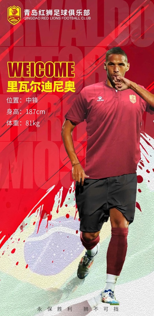 经友好协商并达成一致,巴西籍球员里瓦尔迪尼奥(Rivaldo Vitor Ferreira Mosca)正式加盟青岛红狮足球俱乐部。