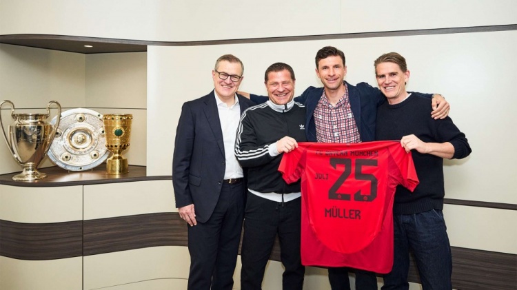 穆勒在2000年他年仅10岁时就加入拜仁青训,并在2008年8月15日代表拜仁上演德甲首秀,至今总计为拜仁出场743次打进247球和助攻273次,他是拜仁目前的队史出场纪录保持者。拜仁官方已经表示,未来将会为穆勒举办告别赛,这名老将也随队出战今夏在美国进行的世俱杯。